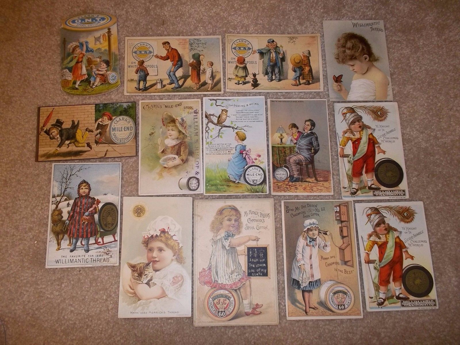 Title (ebay affiliate link): victorian trade cards - lot of 14 thread - Clarks ONT, Mile End, Chadwick, etc.