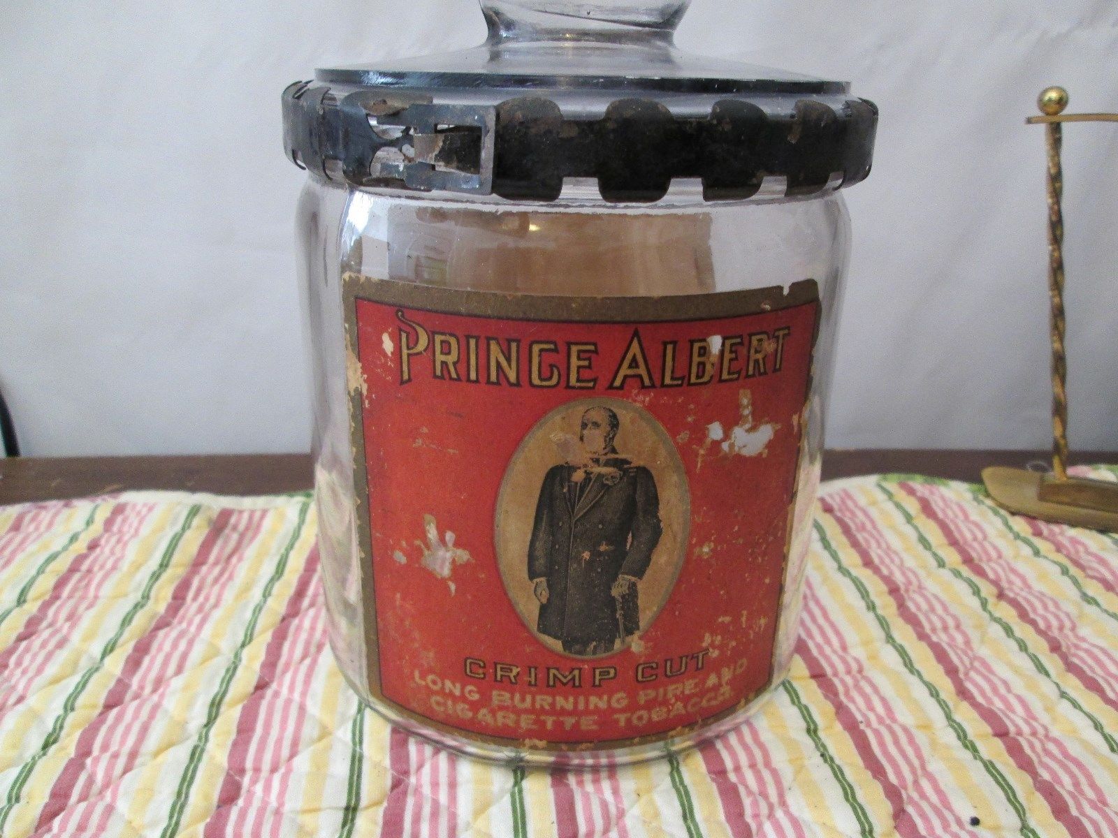 Title (ebay affiliate link): Antique; 1907 Prince Albert Crimp Cut Glass Pipe Display Jar