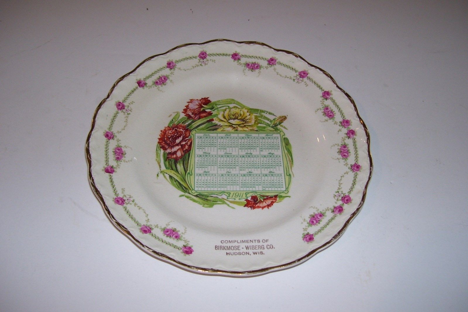 Title (ebay affiliate link): 1911 Antique Souvenir Calendar Plate from BIRKMOSE-WIBERG CO.-HUDSON,WIS.