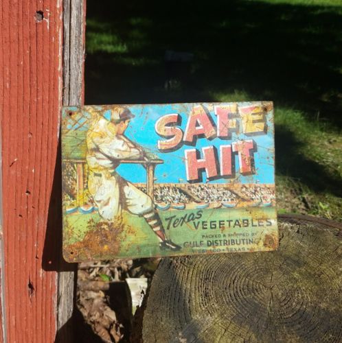 Title (ebay affiliate link): Vintage old rare safe hit advertising metal sign gas station general store