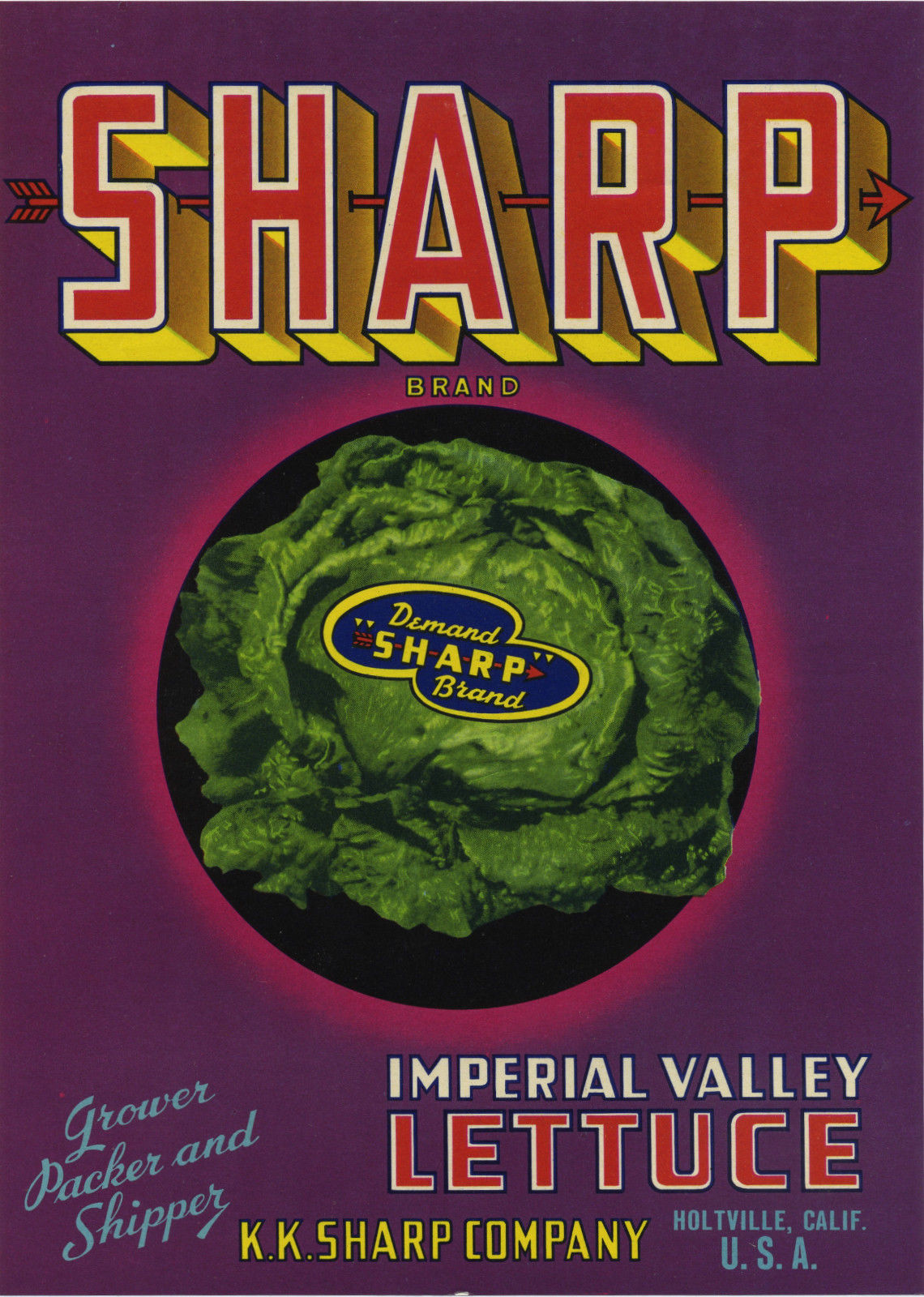 Sharps Imperial Valley Lettuce Crate Label Holtville California