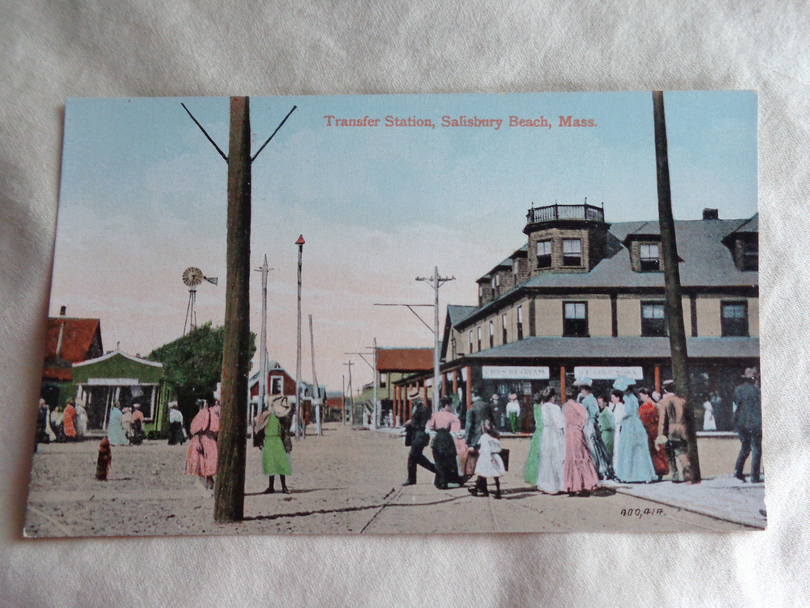 Title (ebay affiliate link): Salisbury Beach Mass - The Square - trolley - people - early