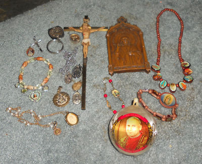 Title (ebay affiliate link): VTG Religious Lot: Crucifix, Medals, Key Chain, Plaque+