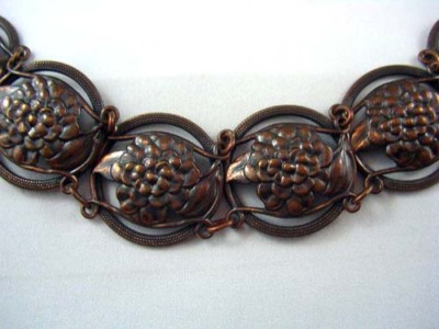 Title (ebay affiliate link): Antique ART DECO Copper Flower Panel Braclet BEAUTY!