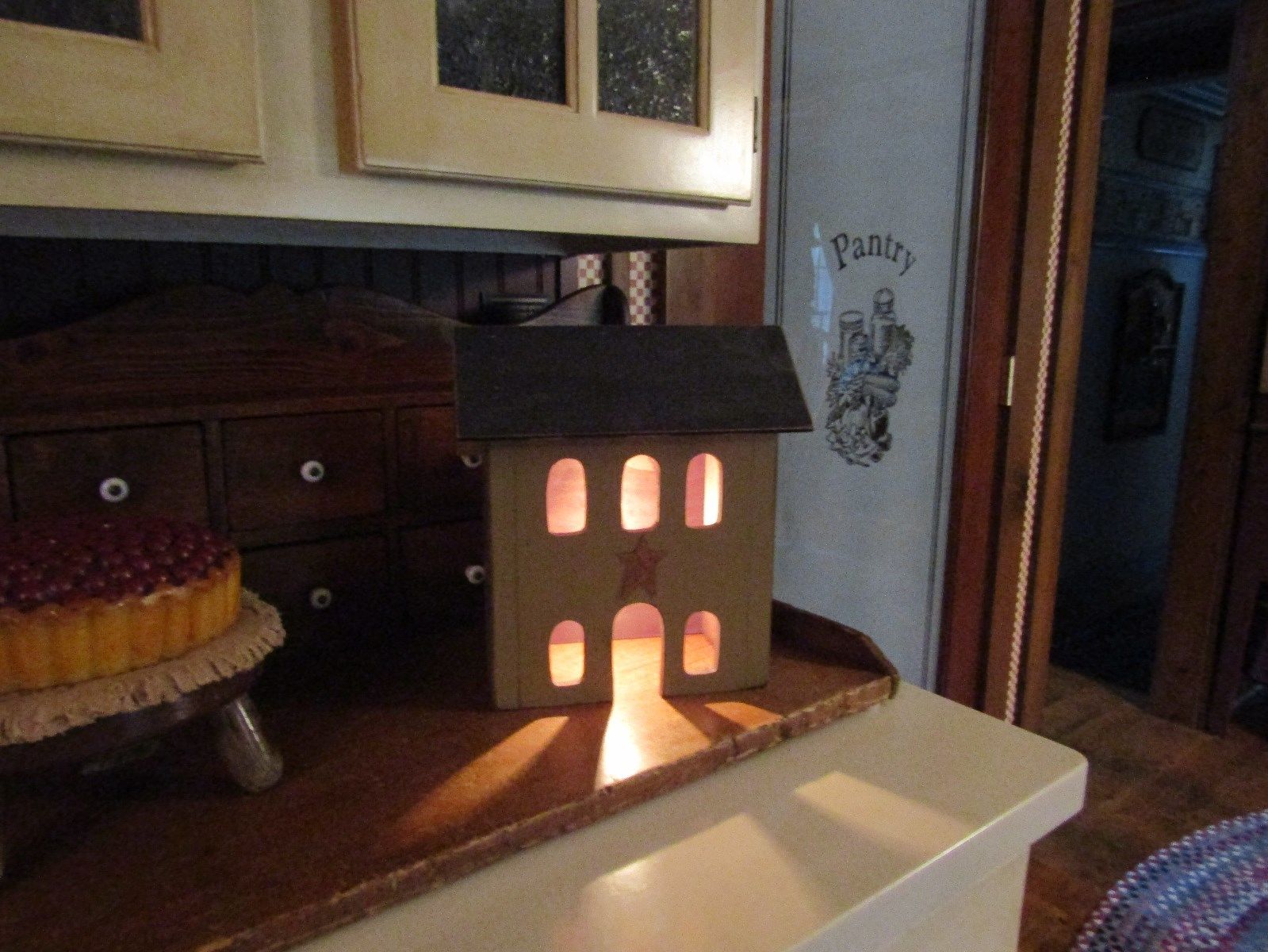 Title (ebay affiliate link): PRIMITIVE WOODEN LIGHTED SALTBOX HOUSE WITH RUSTY STAR OVER DOOR
