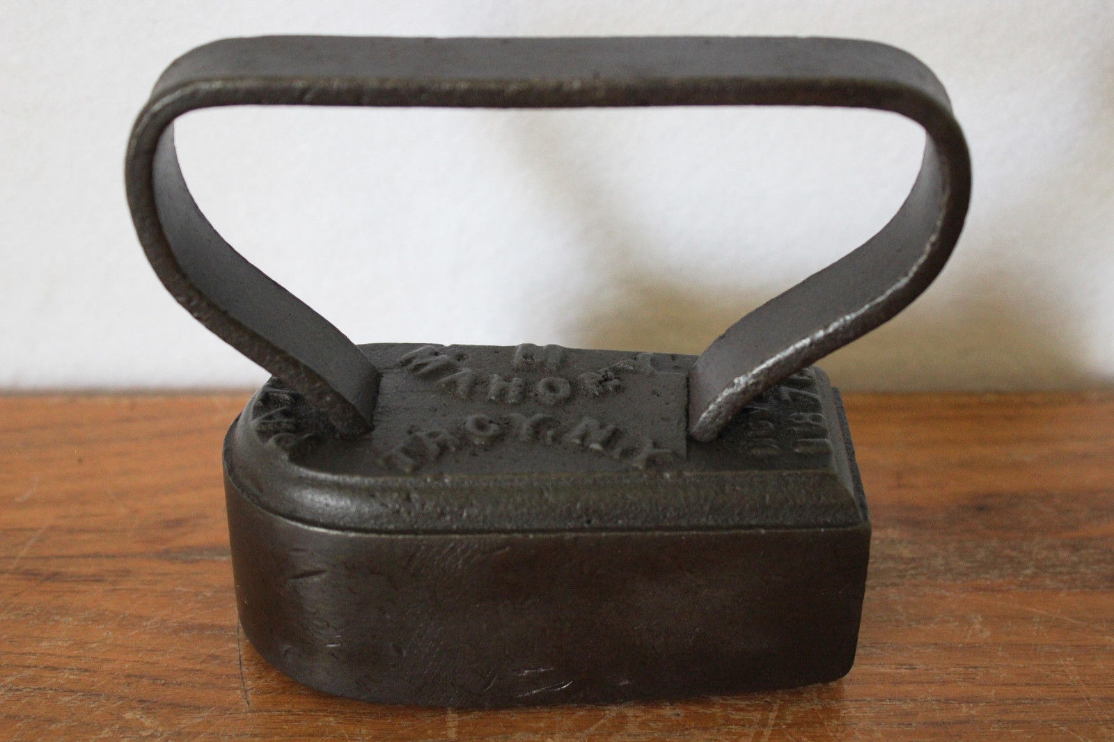 Title (ebay affiliate link): Antique Sadiron Hat Pressing Iron M MAHONY TROY NY. 1876 Cast Iron Laundry Tool