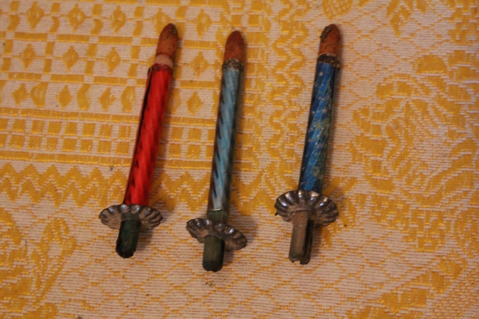 Set of 3 Neat Vintage Christmas Candle Ornaments Wood Foil Mica
