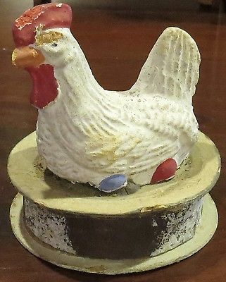 Antique German 3" Tall & 4" Wide Paper Mache Candy Container Hen on Nest Signed