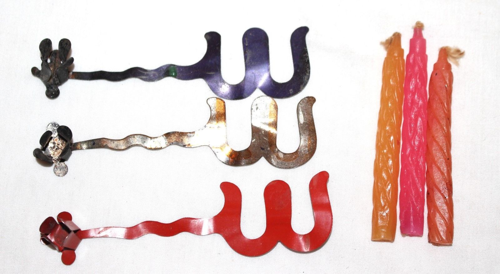 Three "E" shaped, extended Candleholders for Christmas Tree. 1904. Candles also