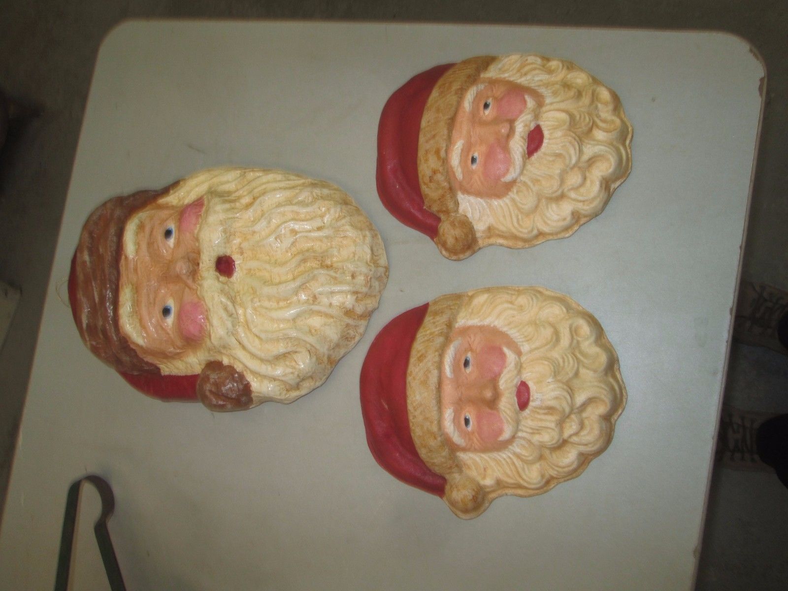 Paper Mache Santa Claus FACE, NICE LOT OF 3