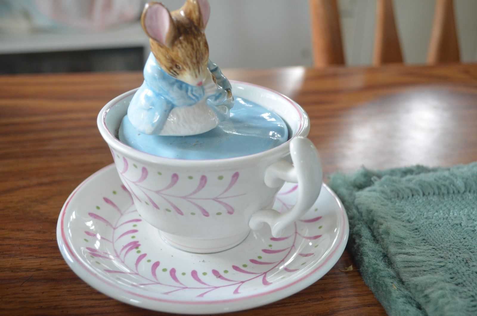 Title (ebay affiliate link): SCHMID BEATRIX POTTER MUSICAL TEA CUP "TAILOR OF GLOUCESTER" BEAUTIFUL LOOK!!