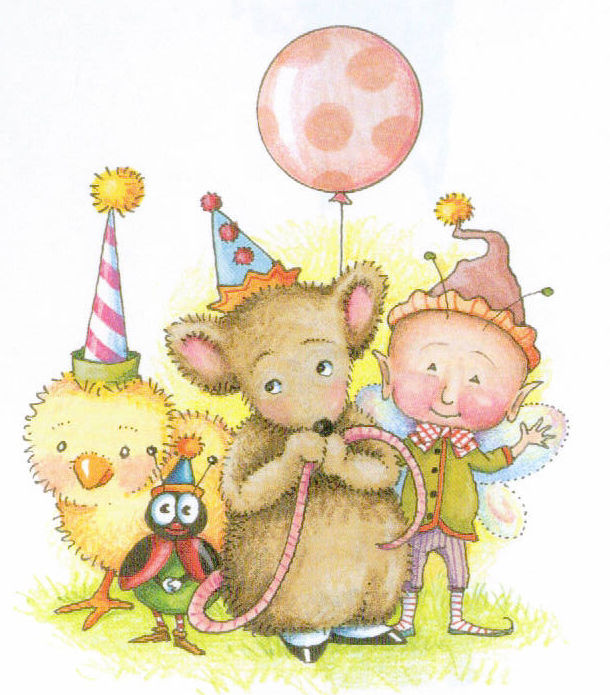 Title (ebay affiliate link): BIRTHDAY PARTY MOUSE ELF-Handcrafted Fridge Magnet-Using art by Mary Engelbreit