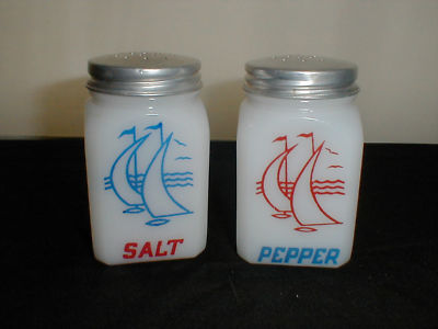 Milk Glass McKee Sail Boat Salt & Pepper Shakers