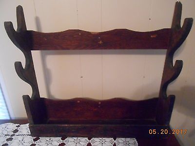 Old/Primitive Wood Gun Rack Wall Hanger Boxed Bottom for Ammo