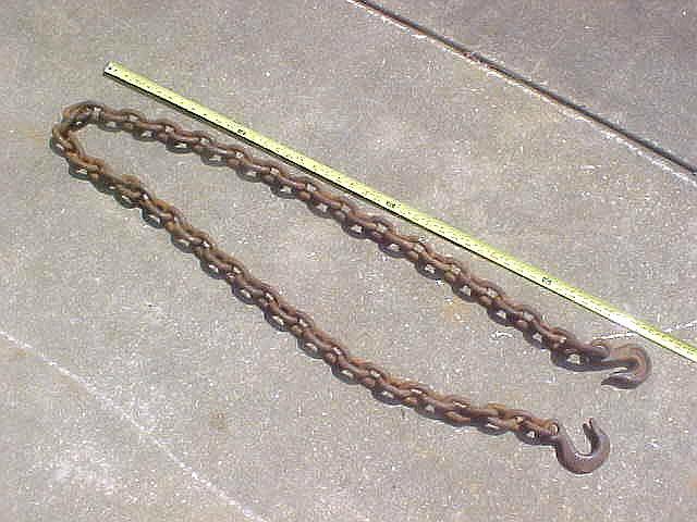 Title (ebay affiliate link): big orange red rusty logging chain with two hooks 96" long & 3/8" diameter