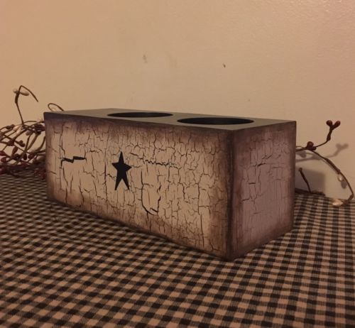 Title (ebay affiliate link): PRIMITIVE CRACKLE CANDLE HOLDER BLOCK WOOD BLACK TAN COUNTRY FARMHOUSE DECOR