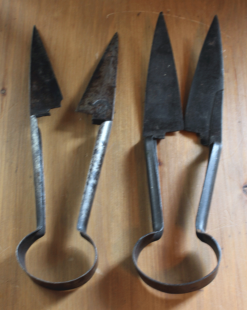 Title (ebay affiliate link): TWO Primitive ANTIQUE Tools SHEEP SHEARS One Marked WWG WILKINSON