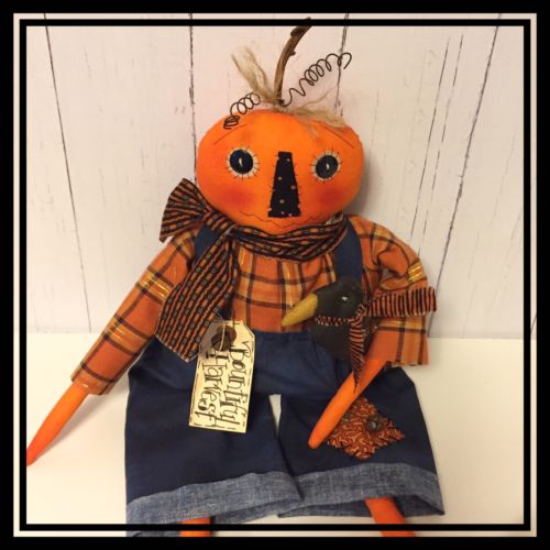 Title (ebay affiliate link): PriMiTiVe FoLk ArT DoLL PuMpKiN HeAd CRoW OrNiE OOAK FaLL HaNg TaG RuStY BeLL