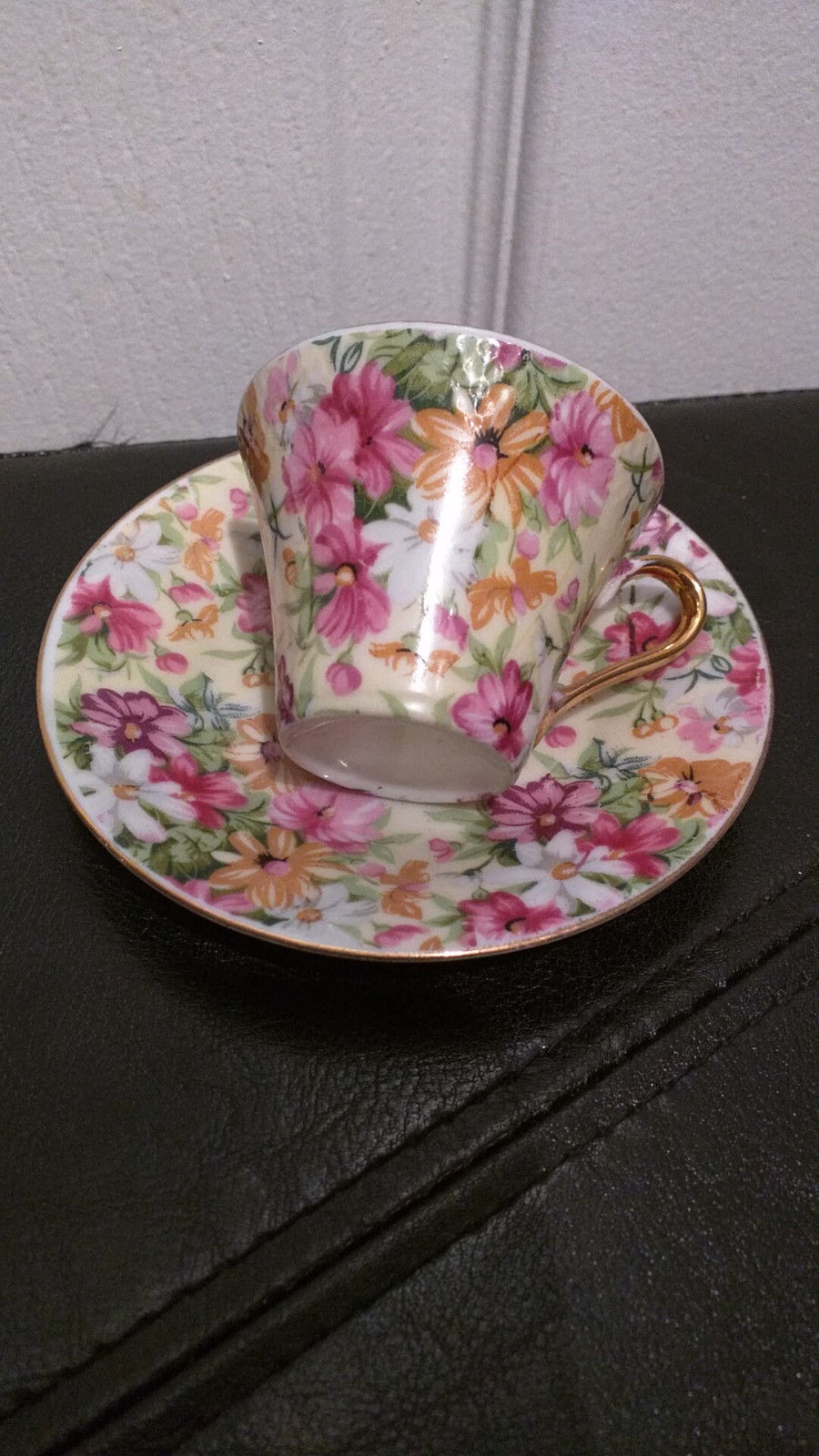 CHINTZ DEMITASSE ESPRESSO COFFEE TEA CUP SAUCER DAISY GOLD TRIM