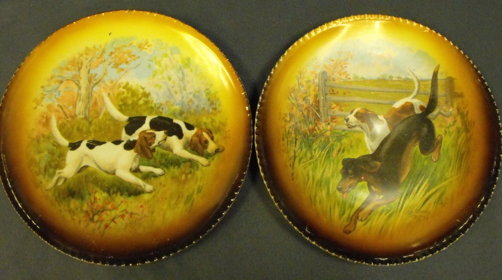 Vintage decorator plates by artist R.K. Beck Hunting dogs