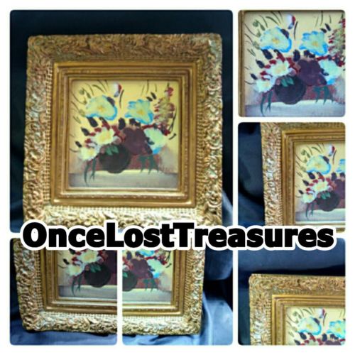 Vintage French Rococo Ornate Gold Gilt Gesso Small Wood Picture Frame Floral