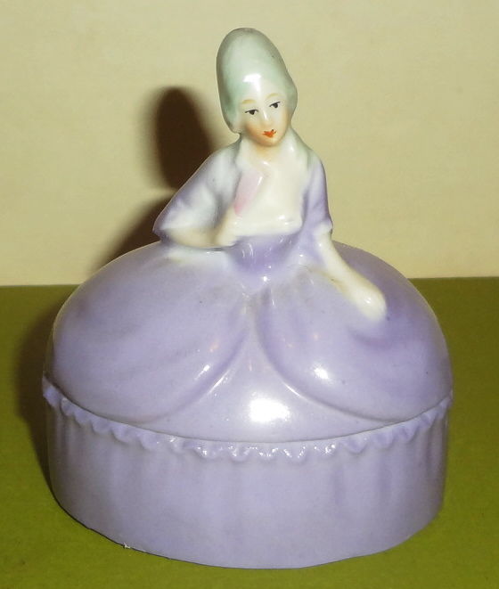 e1900''s GERMAN porcelain LADY & FAN HALF DOLL TRINKET BOX powder - 3"h x 2 1/2"w