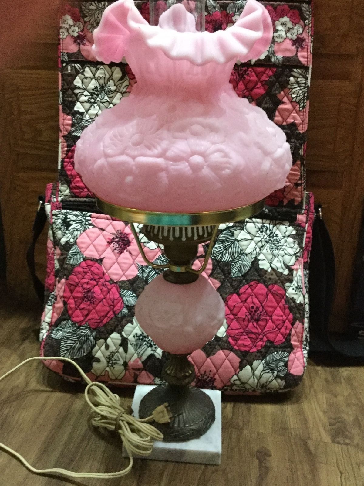 FENTON OLD PINK COLOR CUSTARD GLASS POPPY STUDENT LAMP