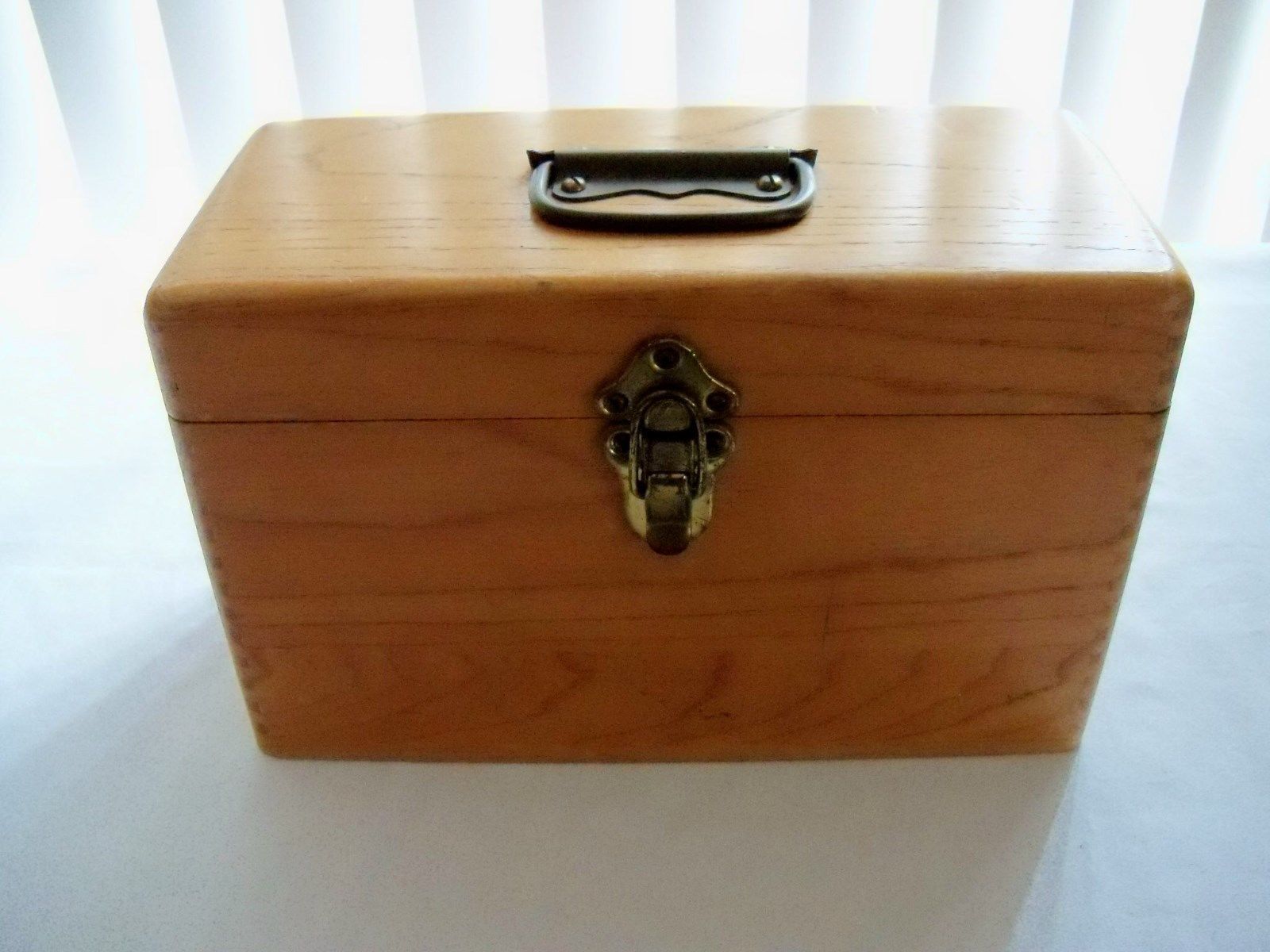 Vintage Oak Dove Tailed Wooden Box w/Brass Handle and Clasp