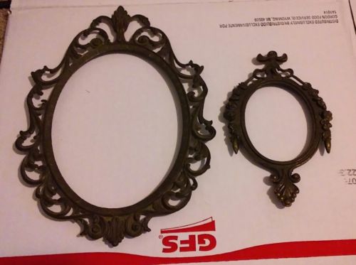 LOT OF 2 VINTAGE OVAL ORNATE METAL TOLEWARE ITALIAN PICTURE FRAMES