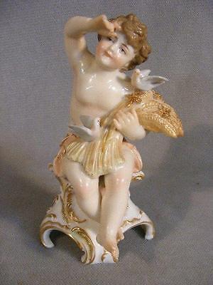 ANTIQUE DRESDEN PORCELAIN FIGURINE OF CHERUB & BIRDS