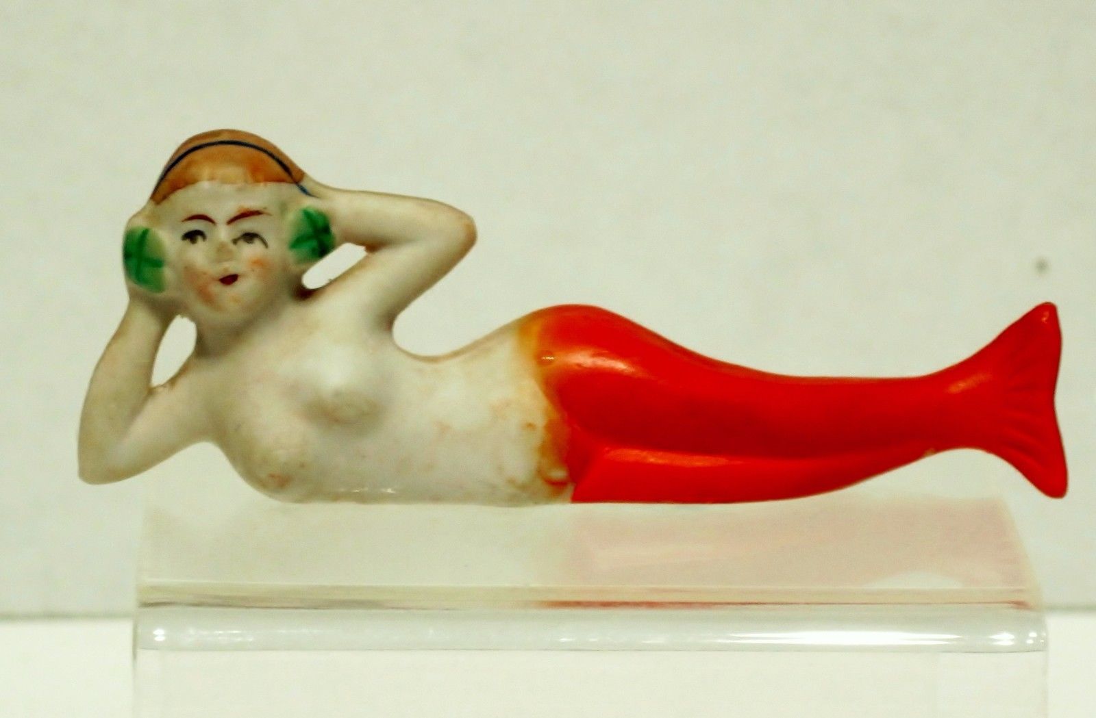 Vintage Japan Bisque Porcelain Mermaid Bathing Beauty Figurine 3.5" long