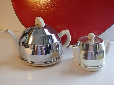 English Beehive Teapot & Creamer With Chrome Cozys