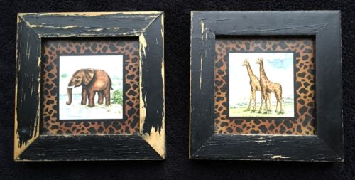 Title (ebay affiliate link): VTG Pair Of Animal Pictures, An Elephant & Giraffe In 4"x 4" Black Wooden Frames