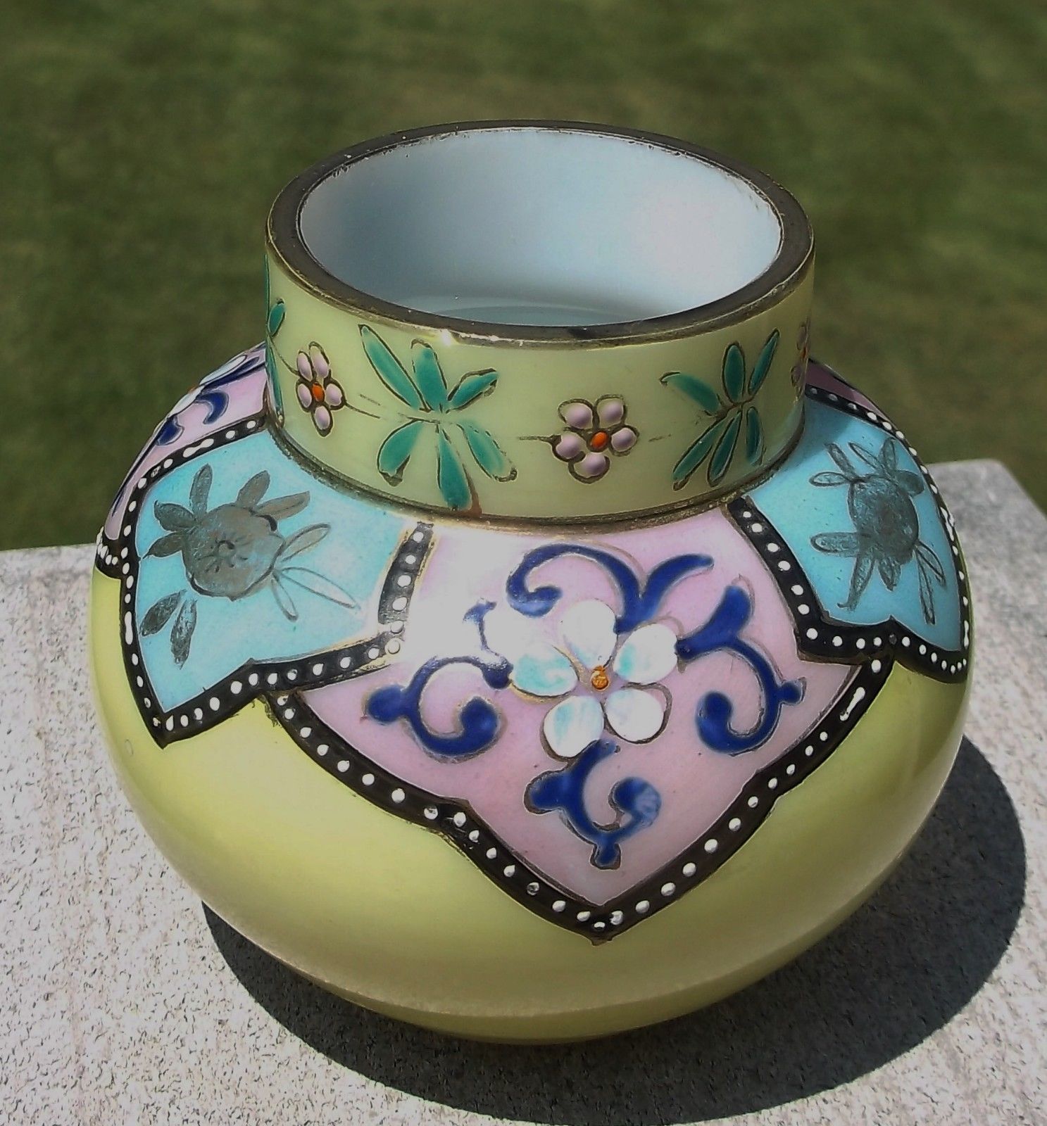 Title (ebay affiliate link): Pretty Miniature 3" Victorian Bristol Glass Vase Hand Painted Enamel Decoration