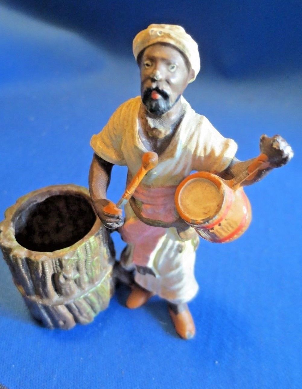 Antique Figural Cold Painted Spelter ARAB W/ DRUM Match Holder NODDER