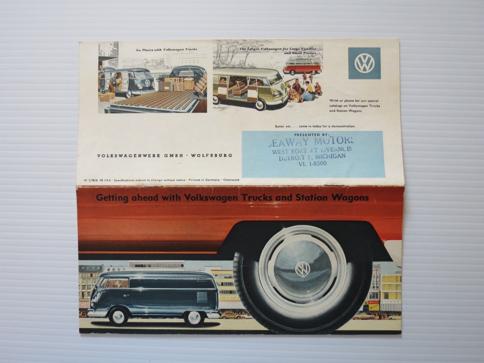 1958 VOLKSWAGEN TRUCK AND STATION WAGON DEALERSHIP BROCHRUE PAMPLETT
