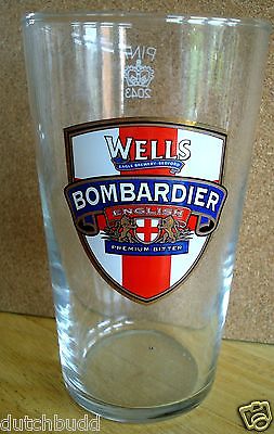 NEW BRITISH / UK - CHARLES WELLS BOMBARDIER BITTER PINT BEER GLASS. (PRE 2006)