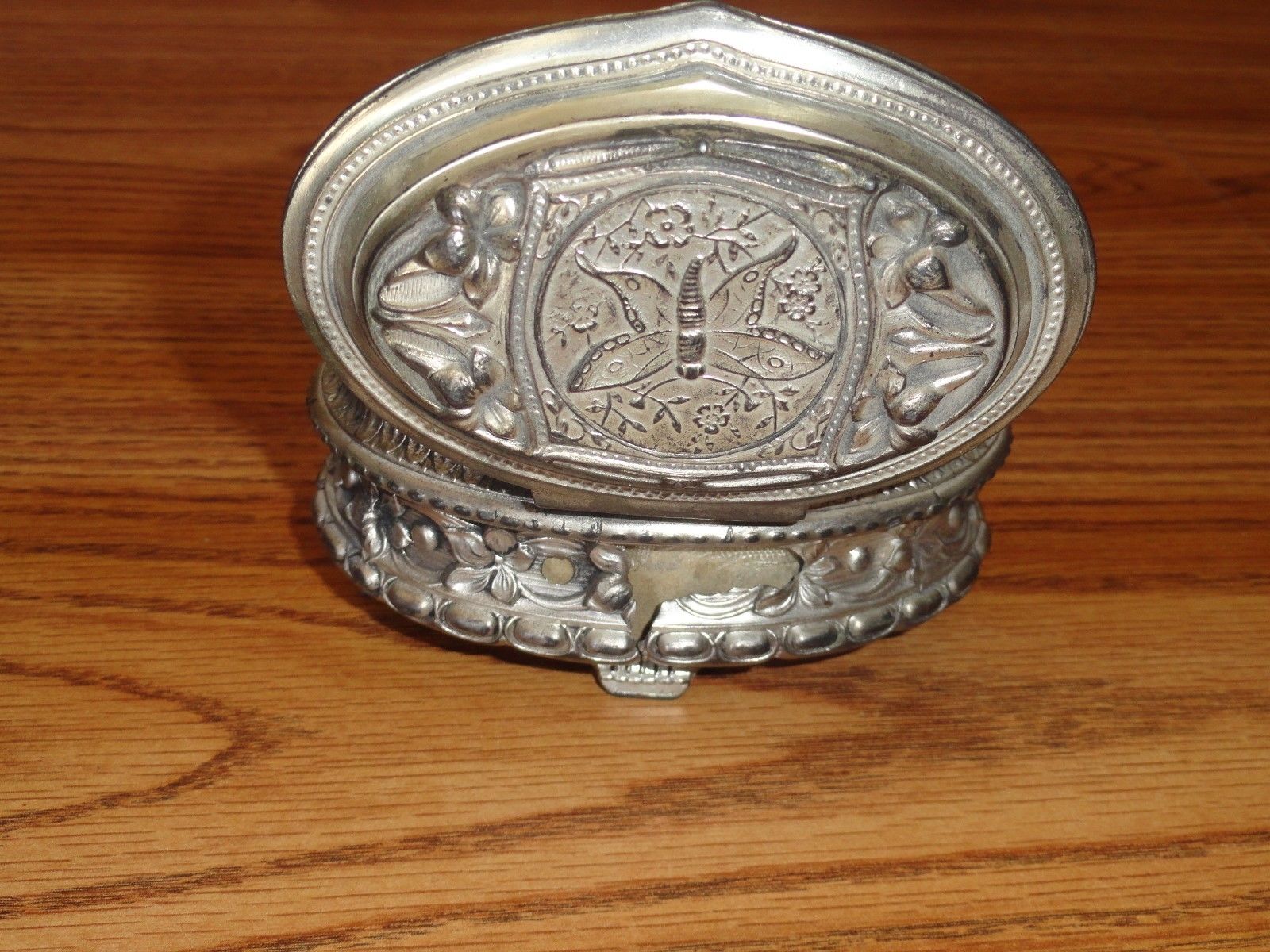 Title (ebay affiliate link): VINTAGE ANTIQUE SILVER HINGED BOX BUTTERFLY TRINKET BOX