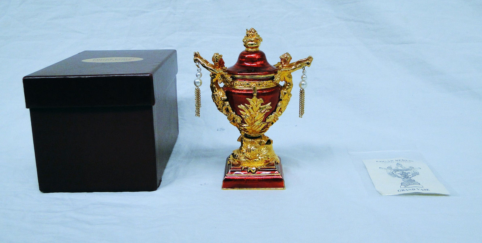 New Edgar Berebi Limited Grand Vase Trinket Box Russian Faberge Mermaid Cherub