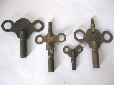 ANTIQUE CLOCK KEYS BRASS AND STEEL LOT OF (4)