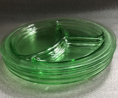 Title (ebay affiliate link): GREEN DEPRESSION GLASS DIVIDED GRILL PLATES, Lot of 4