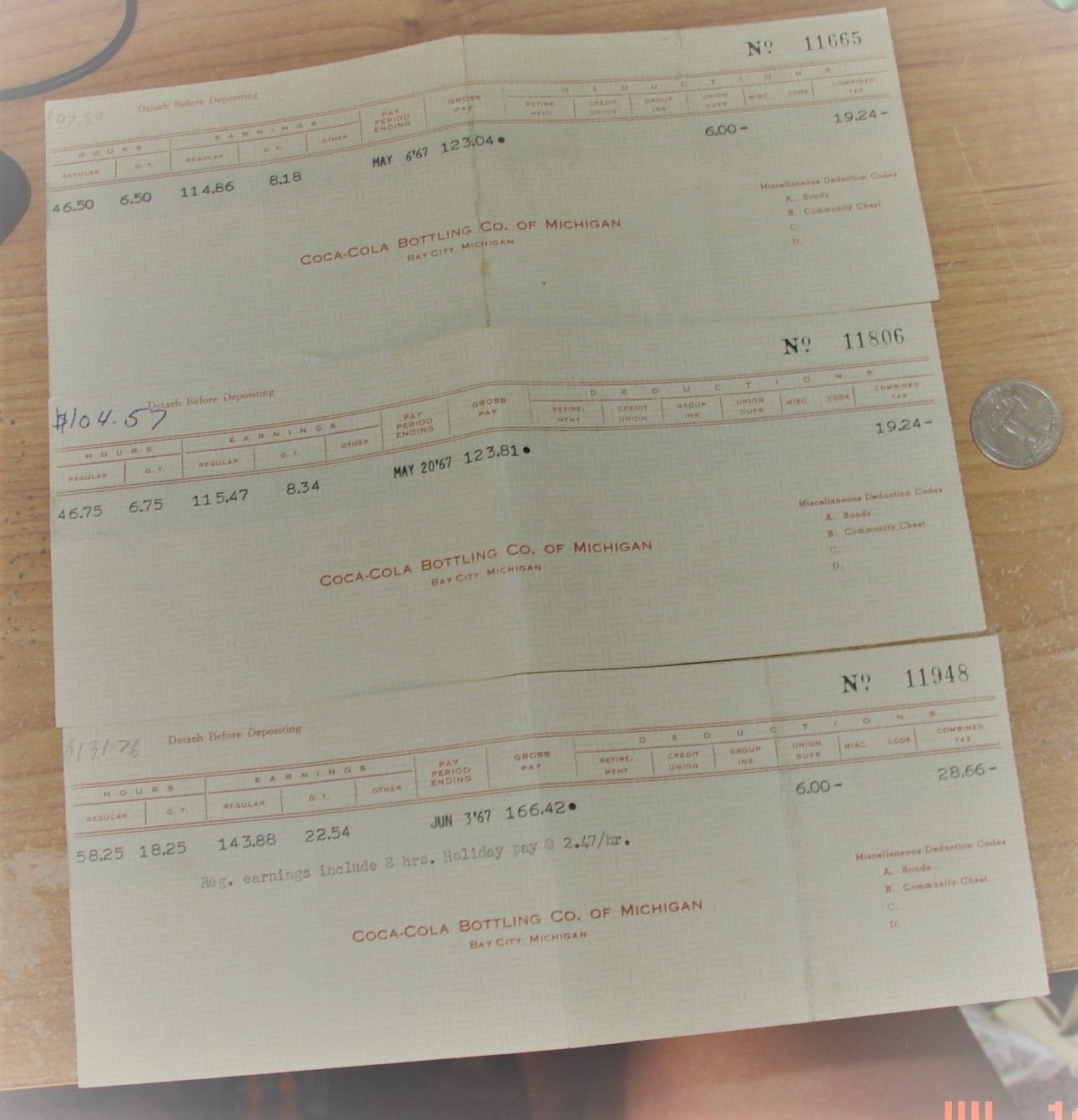 vintage rare coca cola pay stubs bay city mi bottle soda pop ad coke