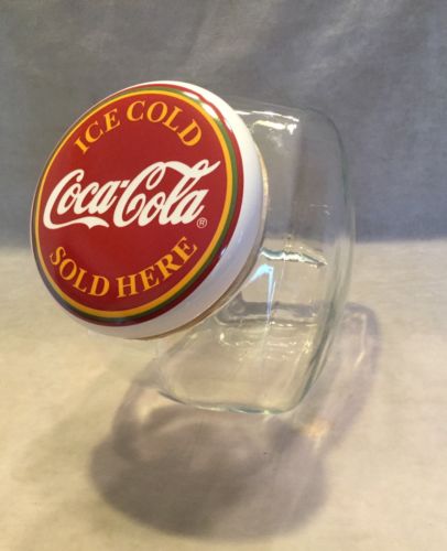 Title (ebay affiliate link): Coca Cola Glass Jar Counter Canister Coke Logo Lid