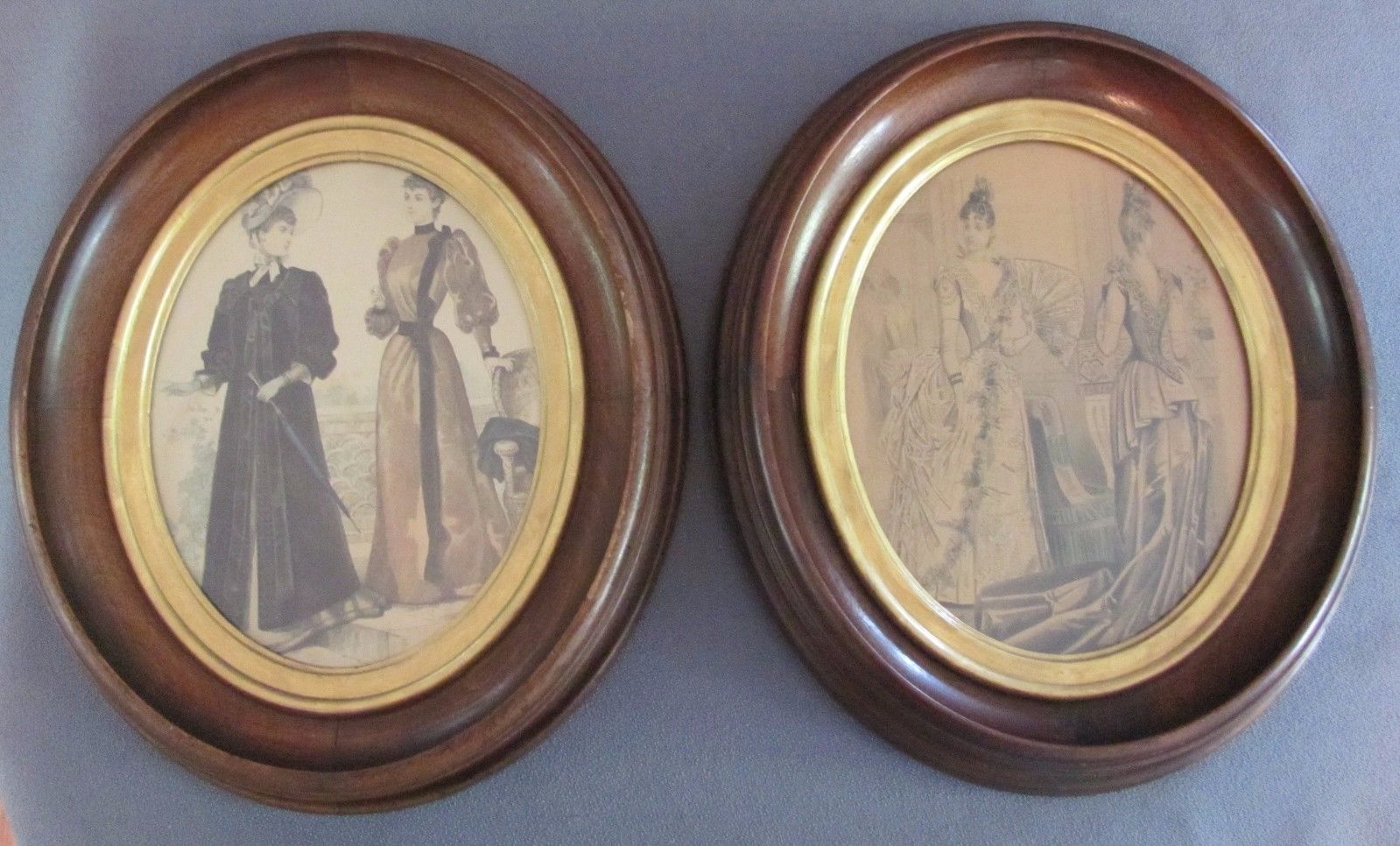 Title (ebay affiliate link): PAIR ANTIQUE 19TH C. VICTORIAN WALNUT DEEP WELL OVAL FRAMES w/ FASHION PRINTS
