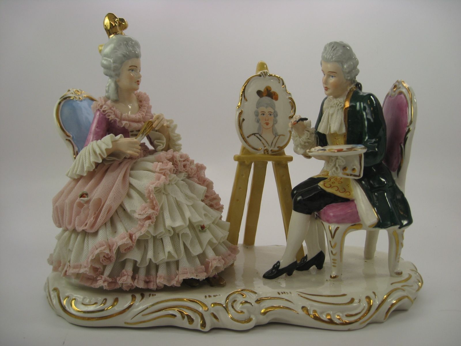 Dresden German Porcelain Figurine Man Woman Painter Artist