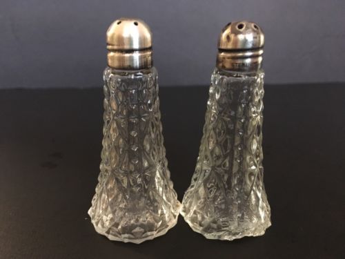Title (ebay affiliate link): VINTAGE Glass Salt & Pepper Shakers With Sterling Silver Tops ~ USA