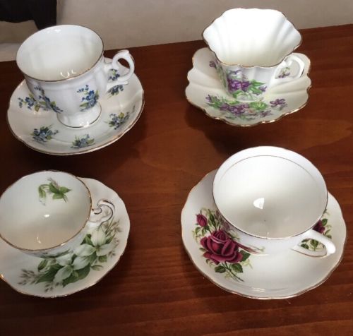 Vintage Bone China From England, Tea Cups And Saucers- Lot Of 4