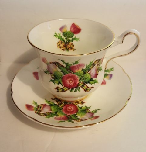 Title (ebay affiliate link): Vintage Royal Grafton Tea Cup and Saucer SCOTTISH THISTLE Bone China England