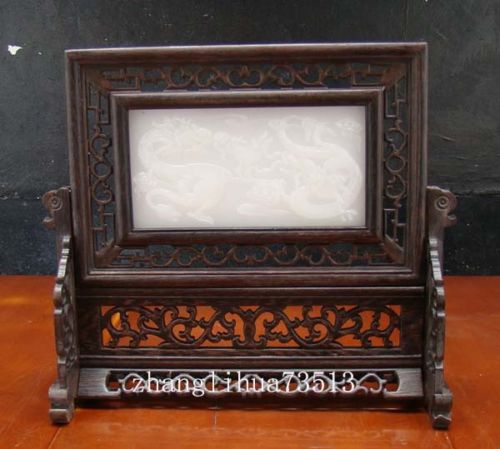 Title (ebay affiliate link): Delicate Antique Handmade Wood & White Jade Inlaid Screen Two Dragon Deco Art