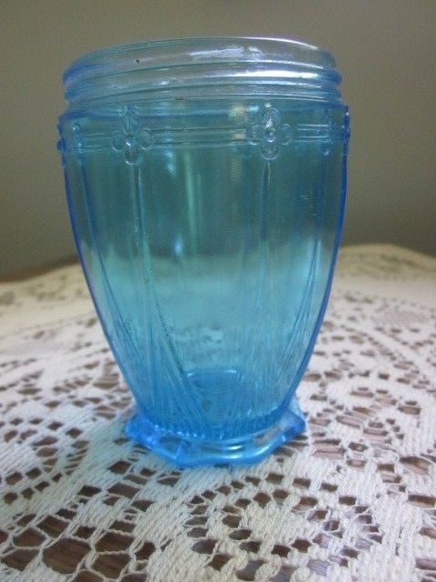 Title (ebay affiliate link): ANTIQUE ART DECO / BLUE GLASS JAR - ORNATE - EMPTY VANITY FACE CREAM -